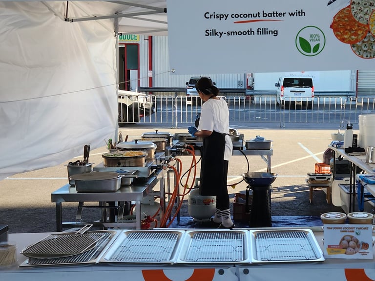 Dive into the world of traditional Thai flavors with Khanom Krok β the perfect blend of crispy coconut batter and silky-smooth filling, freshly made for you.